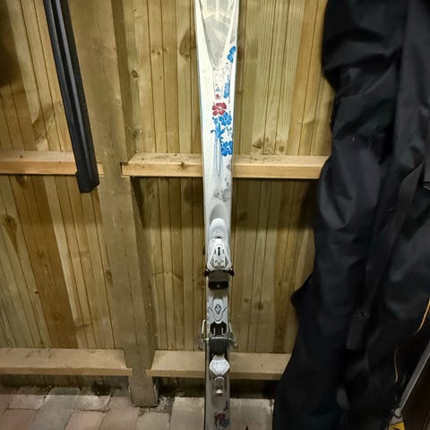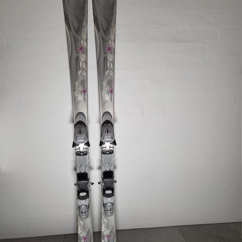 K2 One Luv ski med bindinger. Skiene er gode til begyndere og øvede skiløbere og er rigtig gode på pisten, men kan også køre uden for pisten. De har let twintip i enden og Marker Mod 10.0 bindinger. Dreje radius på 14 m.