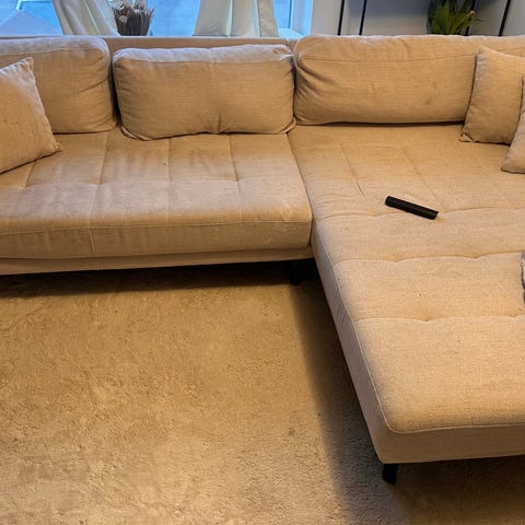 Smart sofa med flytbar chaiselong i lys beige fra BoConcept af mærket Istra. Købt for 9 år siden for kr. 28.000. Stoffet er slidt lidt igennem 2 steder ,som også fremgår af billederne. Prisen afspejler også dette, så I får en flot sofa for pengene.