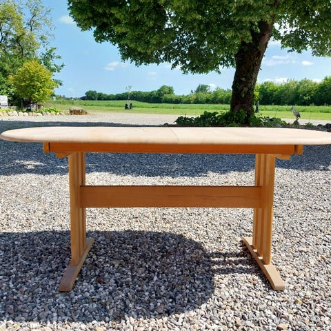 Rigtig velholdt massivt spisebord i sæbebehandlet bøg sælges til afhentning i Vandel. Bud er velkommen. Ben er afmonteret for nem transport. Kan nemt skrues på igen