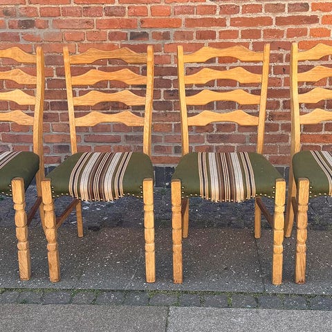 Lækre skal-stole i egefiner med krom-ben. Afhentes på Østerbro. 4 styks. Sælges kun samlet