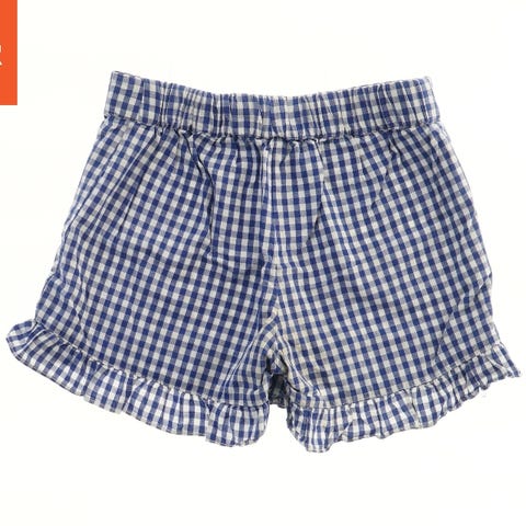 Søde små shorts med sort & hvidt ternet mønster, flæsekanter ved benene. Dertil har de en elastisk talje med en dekorativ knap. Shortsene har været brugt minimalt, derfor kan jeg ikke se nogle former for slid eller huller på dem. Derfor vil jeg mene de er næsten som nye.