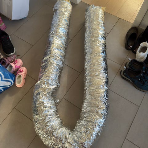 GT alu profiler og plastslanger til byggeri. Pakken indeholder flere aluminiumsprofiler i sølvfarvet metal samt en rulle hvide plastslanger. Egnede til forskellige installations- eller byggeformål..