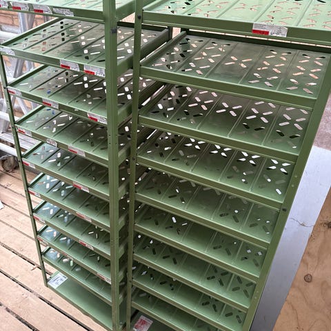 Rigtig fin Grøn skruereol. Kan også bruges til andet end skruer.