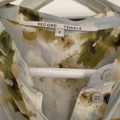 #secondfemale #økologiskbomuld #gul #beige #grøn #brun #bindebånd #sløjfer #vhals #peplumtop #sommerbluse #blomsterprint #selectedfemme #neonoir #zara