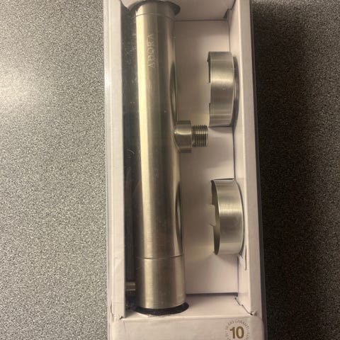 Adora Circum brusearmatur med termostat i rustfrit stål. Inkluderer rosetter. Produktet er designet til at regulere vandtemperaturen sikkert og effektivt i brusebadet.
