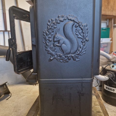 Den bagerste sten inden i brændeovnen er revnet så skal evt. skiftes men kan også sagtens bruges som den er.
