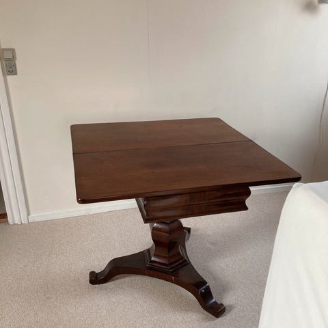 Alt i mahogni, stabilt og velholdt.