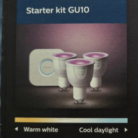 Sælger 3 stk. Philips Hue Color Ambiance spots inkl. dimmer switch, da jeg har nogle i overskud fra et projekt.