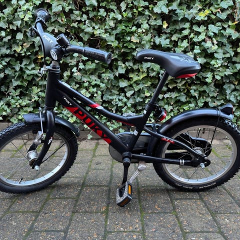 Puky børnecykel med 16" hjul i pink farve. Cyklen har lav indstigning, kædeskærm, støtteben, bagagebærer og håndbremse kombineret med fodbremse. Egnet som første større cykel til barn, der passer til 16" hjulstørrelse.