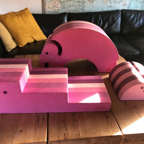 Babybjörn børnemøbel i form af skummoduler i grå farve. Sættet består af polstrede elementer, som kan sammensættes på forskellige måder til leg, kravle- og klatreaktiviteter for børn. Overfladen er blød og egnet til indendørs brug. Velegnet som legemøbel i børneværelse eller legeområde.