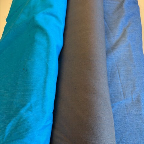 Stofruller med forskellige stoffer i mønstre og farver.
