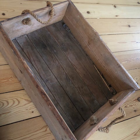 Trækar fra 1848, som er fyldt med historie og patina. Trækarret er malet rødt. Låget sidder lidt løst. Måler 15 x 18 x 20.
