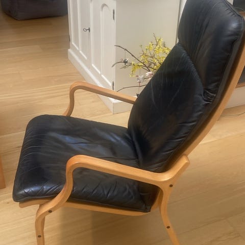 Sælger disse 2 lænestole i brunt imiteret læder den ene er sædet meget i den anden ikke så meget man sider godt i begge 2