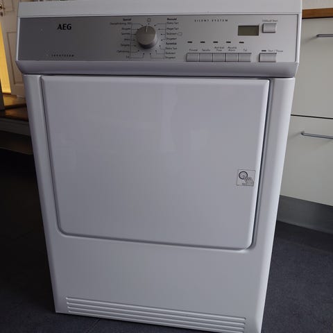 Velfungerende tørretumbler til aftræk. Tørrer hurtigt - med indvendig lys - god stand