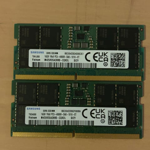 • Kapacitet: 32GB samlet (2×16GB)