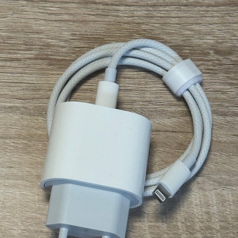 Apple USB‑C oplader 20W i hvid sælges.