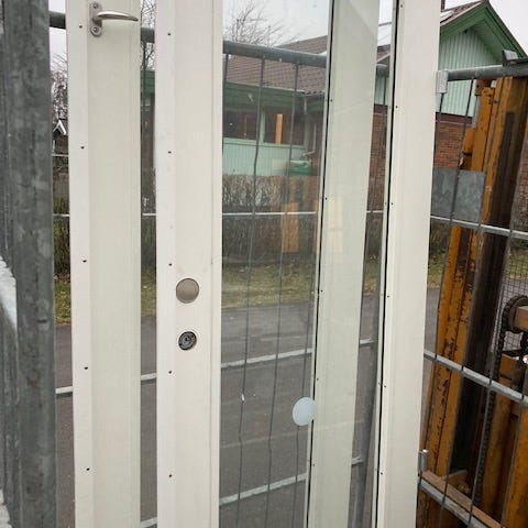 Døren er brugt, men uden slidtage. Dørkarmen er helt ny og ubrugt.