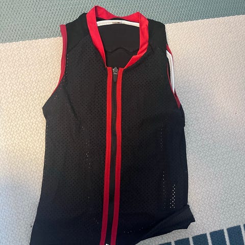 Dainese rygskjold vest i rød-orange til børn. Vest med integreret rygbeskytter, der dækker store dele af ryggen. Længde overkrop 30-35cm. Lynlås foran og elastisk kant forneden.