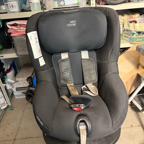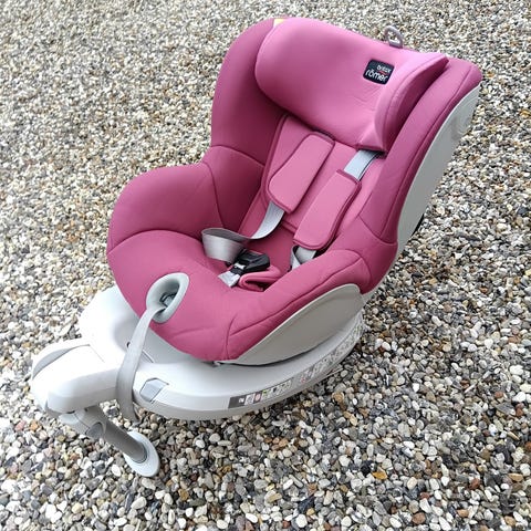 Britax Römer Dualfix autostol til børn op til 18 kg. Autostolen er monteret på en drejbar base, som gør det muligt at vende stolen mod bildøren ved ind- og udstigning. Stolen har integreret 5-punktssele og justerbar hovedstøtte. Betrækket er polstret for øget komfort. På billederne ses en kosmetisk skade i skummet på støttebøjlen, hvilket ikke har betydning for brug. Velegnet som autostol i bilen til småbørn inden for vægtklassen op til 18 kg. Inkl nyfødtindsats, der er brugt 1 gang.