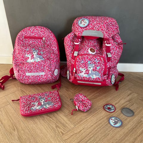Beckmann madkasse‑taske i pink med mønster af sommerfugle og bier. Tasken har isoleret hovedrum med lynlås, som hjælper med at holde madpakke og drikke kølige. Indvendigt er der et netrum med lynlås til småting. Udvendigt har tasken en frontlomme med lynlås samt en elastiklomme i siden til f.eks. drikkedunk. Bærehåndtag foroven og justerbar rem på siden. Velegnet til opbevaring og transport af madpakke til skole, institution eller udflugter.