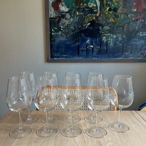 10 Stk. rødvinsglas i rigtig fin stand sælges for 100,00 kr. De er 18 cm høje og åbningen har en diameter på 6,8 cm.