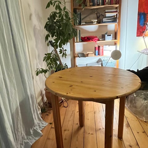 Antikt rundt sidebord med buede ben