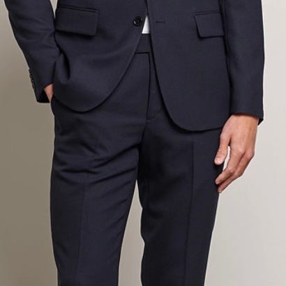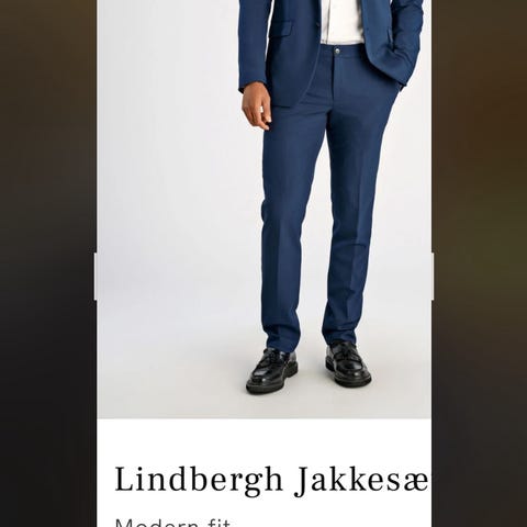 J. Lindeberg habitjakke til herre i str. 48/UK38 R. Jakken er blå og fremstillet i uld. Klassisk model med revers, to-knaps lukning og forlommer. Sparsomt brugt