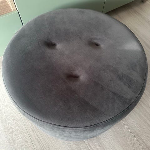 En pæn, ren puf. Måler 65 i omkreds. 37 cm høj. Fra et røgfrit hjem. Kan ses på adressen Jens Baggesens vej 8210 Århus v