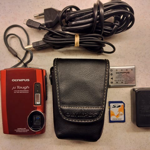 Du får kameraet med to gode batterier (uoriginale/nyere) og oplader, lækker Dörr taske samt et Olympus xD picture card på 512MB.