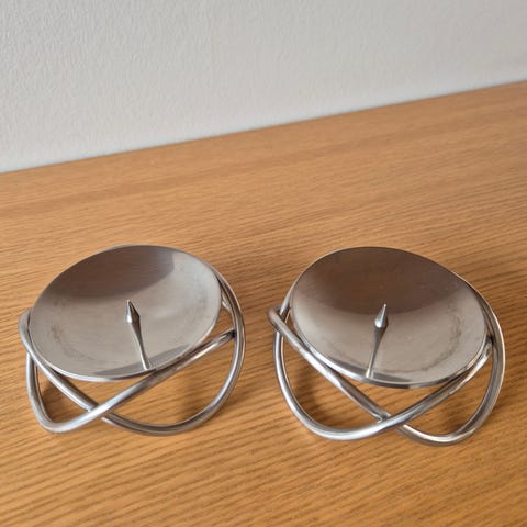 i rustfrit stål. Højden 6,5 cm, diameter 10,5 cm. Passer til bloklys. Kun brugt få gange. Sendes gerne mod betaling af fragt.