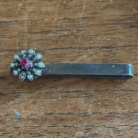 Skøn slipsenål i sterling sølv med perle. Længde 4 cm.