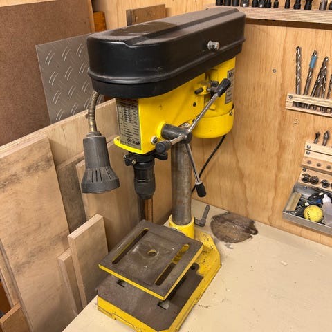 tilsluttes 230V m. start/stop-knap. Velegnet til boring i træ, plast og metal