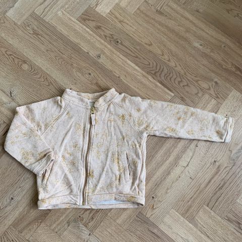Cardigan fra MarMar i 55% uld og 45% bomuld. Str. 4-5 år. Farven på det første billede er sådan, den ser ud. Har været vasket få gange og efter anvisning. Malingen på knapperne er skallet lidt af, se billede, men det ser meget sødt ud.
