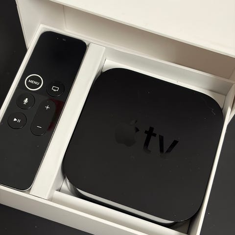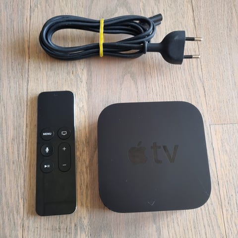 Apple TV 4K med fjernbetjening og 32GB lagerplads. Enheden understøtter 4K HDR-video og kan tilsluttes tv via HDMI. Leveres i original æske med medfølgende fjernbetjening. Velegnet til streaming af film, serier, musik og apps fra forskellige tjenester via internetforbindelse.