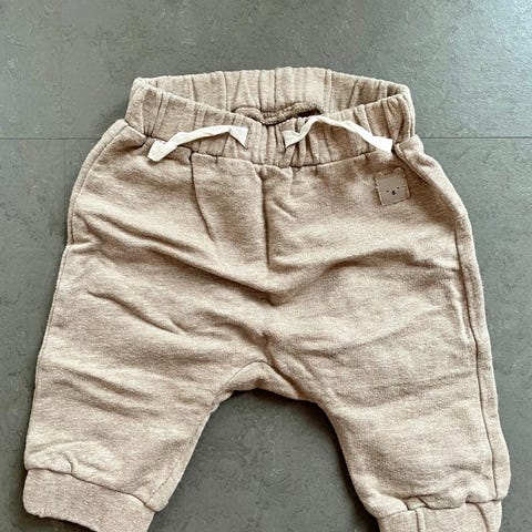 Pæne bukser med seler til baby i beige fra HM i str. 86. De har ikke været brugt.