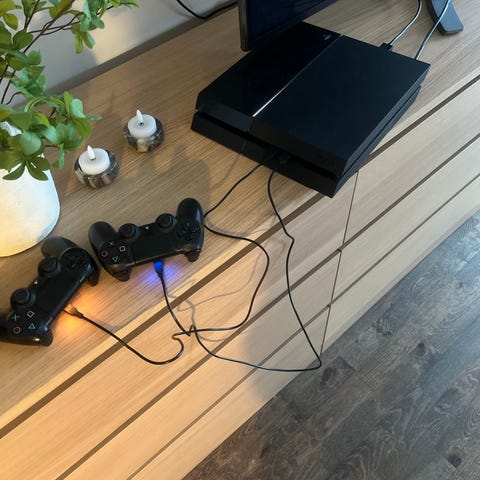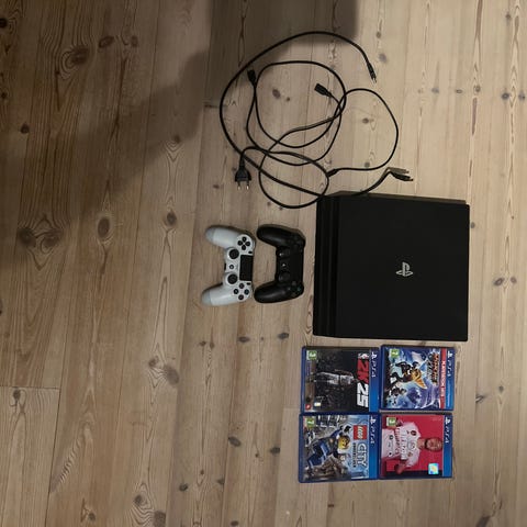 Sony Playstation 4 konsol i sort. With different games..... Call of duty, Fortnight, Ghost busters, It takes two, FIFA2026