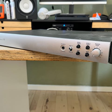 2 forstærkere haves, der kan derfor laves to uafhængige Installationer med X højttalere i hver.