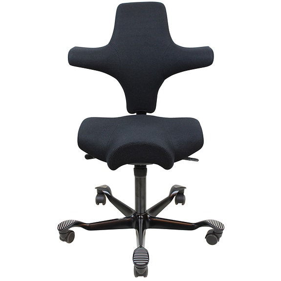 HÅG Capisco 8106 stolen er specielt velegnet til arbejdsborde i forskellige højder eller til højdeindstillelige borde. Stolen giver en behagelig og støttende siddekomfort, uanset om du sidder fremadrettet eller drejet til siden. Sædet er udformet som en sadel, hvilket betyder, at din blodgennemstrømning er fri og sammen med den høje vandring indbyder stolen til, at din siddestilling varieres endnu mere end på en standard kontorstol, så den også anvendes som en stå stol.Stolen har indbygget fodstøtter på fodkrydset. Det indbyggede vip har en fast vinkel mellem sæde og ryg og kan låses; det kan vippe fra 5º fremadrettet til 17º bagover. Kombineret med en sædedybdejustering på mellem 37 og 46 cm gør dette, at du som bruger vil føle en behagelig støtte hele arbejdsdagen. Ryggen kan justeres i højden, så du opnår den ideelle lændestøtte.HÅG Capisco er den første stol i verden, som har opnået det officielle nordiske miljømærke Svanen. Hele filosofien omkring fremstillingen af HÅG Capisco stolen er miljøet, således er stolens sæde fremstillet af genbrugsmaterialer, og leverandøren er ISO 14001 miljøcertificeret.