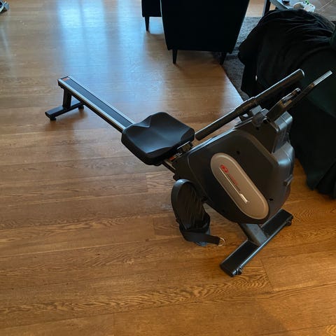 Sælger denne praktiske og støjsvage romaskine, som er ideel til effektiv træning af hele kroppen derhjemme. Maskinen er udstyret med et magnetisk modstandssystem med hele 16 forskellige niveauer, så man nemt kan justere intensiteten efter behov. Den har en indbygget LCD-skærm, der holder styr på de vigtigste træningsdata, og det forbedrede svinghjul sikrer en jævn og lydløs bevægelse under brug. Romaskinen er designet til at være pladsbesparende og kan nemt foldes sammen, når den ikke er i brug. Den fremstår i pæn stand med almindelige brugsspor og fungerer fuldstændig som den skal.