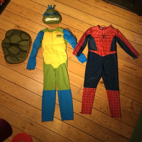 Brandmand og superhelt str 110-116. Str 104 kan nok også godt passe dem.