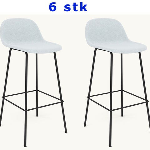 Designet af Iskos-Berlin, for Muuto Barstol, model Fiber Bar Stool. Stel af lakeret metal, sæde og ryg af fiberkomposit, betrukket med blåt stof.