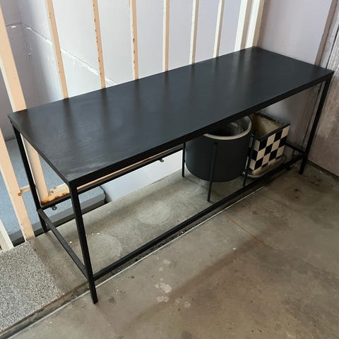 Står stabilt og i pæn stand uden skader. God plads til TV, konsoller og udstyr, samt åbent rum til kabler.