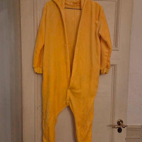 Pikachu heldragt i gul farve til unisex. Dragten har hætte med Pikachu-ansigt, ører og hale bagpå. Den er forsynet med lynlås foran og har lange ærmer og lange ben med elastik ved anklerne. Egnet som kostume eller som hyggetøj i hjemmet.