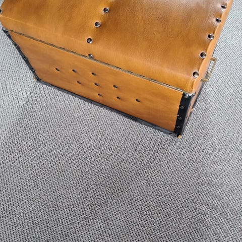 Produktet er en brun læder kiste til opbevaring, dekoreret med nitter,Afhentes i:,Røde Kors Kolding (621),Bemærk at mail, chat og beskeder ikke besvares, og varen skal købes på knappen "Gå til varen"