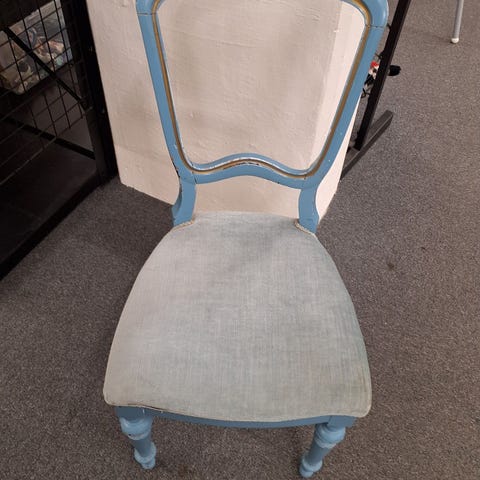 Stolen har en træramme med udsmykning og en polstret ryg og sæde i rød velour. Er velholdt,Afhentes i:,Røde Kors Roskildevej / Valby (101),Bemærk at mail, chat og beskeder ikke besvares, og varen skal købes på knappen "Gå til varen"