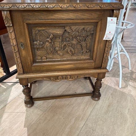 Skabet har glastype og træramme med to skuffer. Naturlig trælister. Lys.,Afhentes i:,Røde Kors Kolding (621),Bemærk at mail, chat og beskeder ikke besvares, og varen skal købes på knappen "Gå til varen"