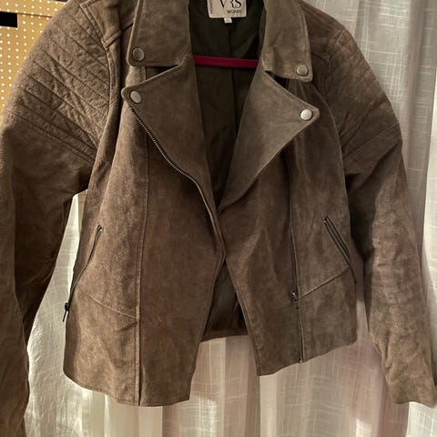 Jakken er lavet af blød materiale med en jævn overflade. Den har en tætsiddende krave, lynlås foran samt flere sidelommer.,Afhentes i:,Røde Kors Roskildevej / Valby (101),Bemærk at mail, chat og beskeder ikke besvares, og varen skal købes på knappen "Gå til varen"