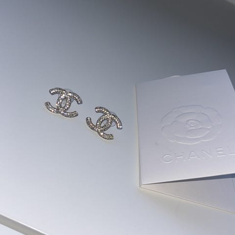 Chanel øreringe i forgyldt metal med perler. Øreringene er udført som creoler med påsatte perler langs kanten og et centralt Chanel-logo på fronten. Velegnet som smykke til daglig brug eller ved særlige lejligheder.