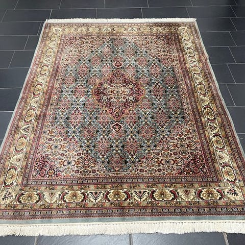 Der tilbydes et håndknyttet orientalsk tæppe fra Tabriz.