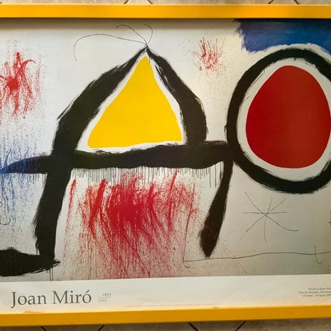 1919 er Miró første gang i Paris, kunstens verdenshovedstad, og fra 1921 har han der ud over Barcelona også sit eget atelier. Med maleriet 'Gården' opstår allerede kort derefter et programmatisk værk – det gør det muligt at følge Mirós kunsts overgang fra den realistiske opfattelse til